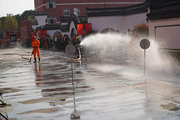 本次比賽共有23家物業(yè)服務企業(yè)報名參與,比賽內(nèi)容分為兩個項目:一、固定消火栓出水射靶:每參賽隊2名隊員參加,在比賽中分工協(xié)作,連接消防車(壓力街道統(tǒng)一控制)、水帶、水槍,最后出水,射擊射水靶,將靶射倒為止(水源統(tǒng)一供應),各隊比賽一次即止。二、50米油桶滅火:隊員在起點線聽到發(fā)令后迅速起跑,提起滅火器,然后再跑至50米(女,25米)處,將油桶火滅掉,拎著滅火器迅速跑回終點。